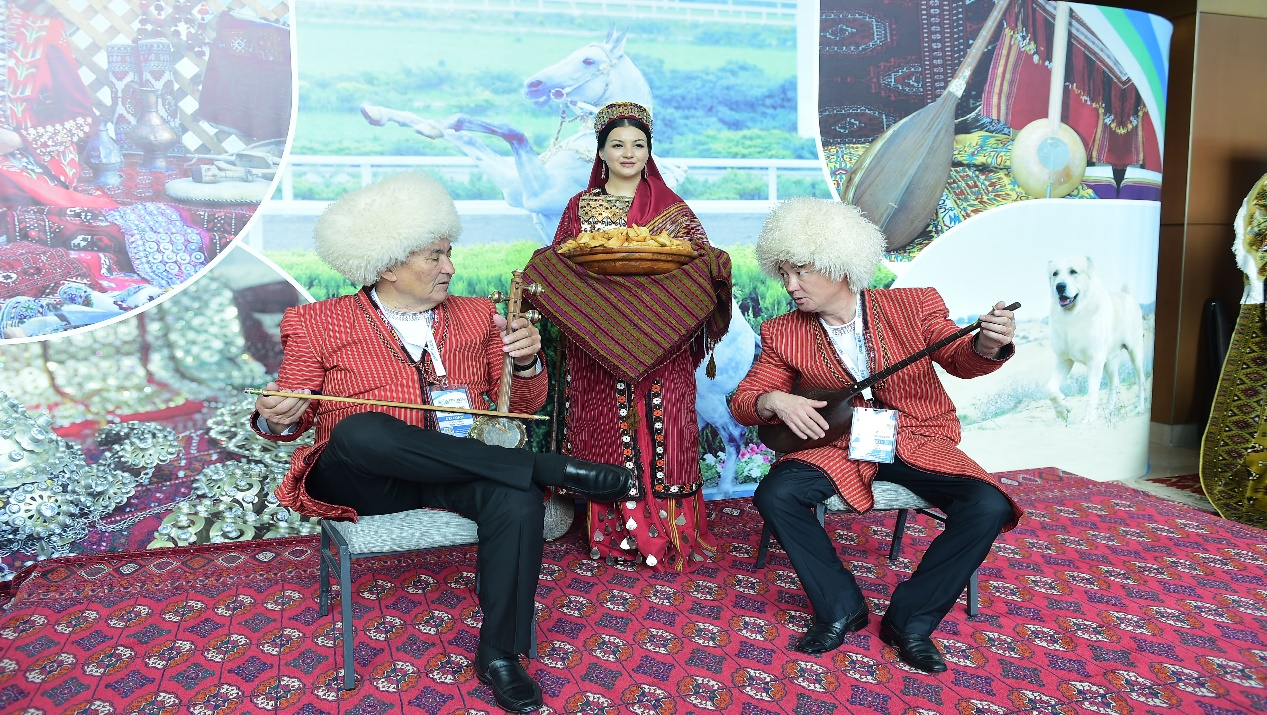 From the very first step on the forum site, participants found themselves in an atmosphere of hospitality and inspiration. The entrance to the KLCC park was decorated with the national flags of Turkmenistan and Malaysia, and a Turkmen girl in national dress greeted the guests, presenting bread on a ritual sachak – a symbol of respect and openness. Echoes of Turkmen bakhshi melodies, a light aroma of coffee and a flower arrangement in national tones filled the space with the lively energy of anticipation.